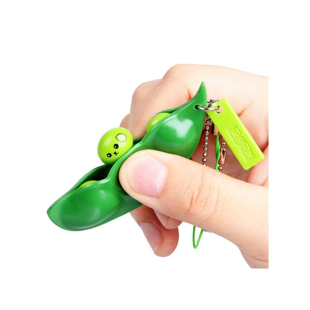 Stláčací antistresový hrášok. Malý prívesok na kľúče alebo na mobilný telefón v dizajne hrachového struku. Dokonale zabaví ruky pri dlhom čakaní a zbaví stresu v práci alebo v škole. Vnútorný obal struku je vyrobený z mäkkého silikónu a hrášky z tvrdého plastu. Jednoduchým zatlačením na hrachová struk, môžete nekonečne dlho vytláčať malé zelené hrášky. Veľkosť: 6.7 x 2.1 x 1.5 cm.