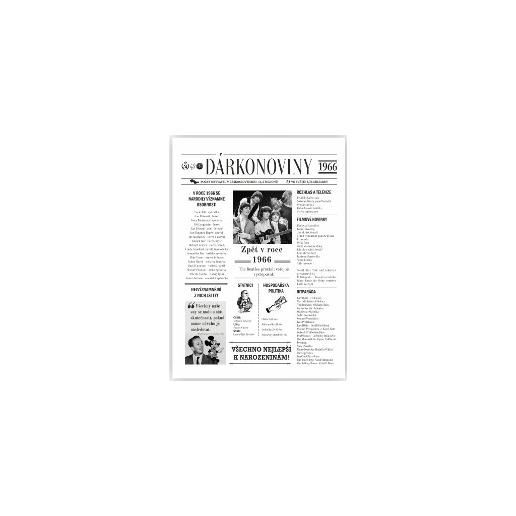 Vytvořili jsme pro Vás originální Dárkonoviny z roku narození 1966.