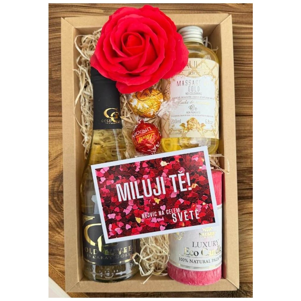 Dárkový balíček Miluji Tě se zlatým vínem