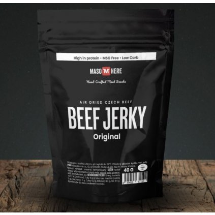 Jedno 40 gramové balenie nášho sušeného mäsa je vyrobené zo 140 gramov hovädzieho a dokáže zastúpiť dennú dávku bielkovín potrebnú pre normálneho človeka so sedavým zamestnaním.