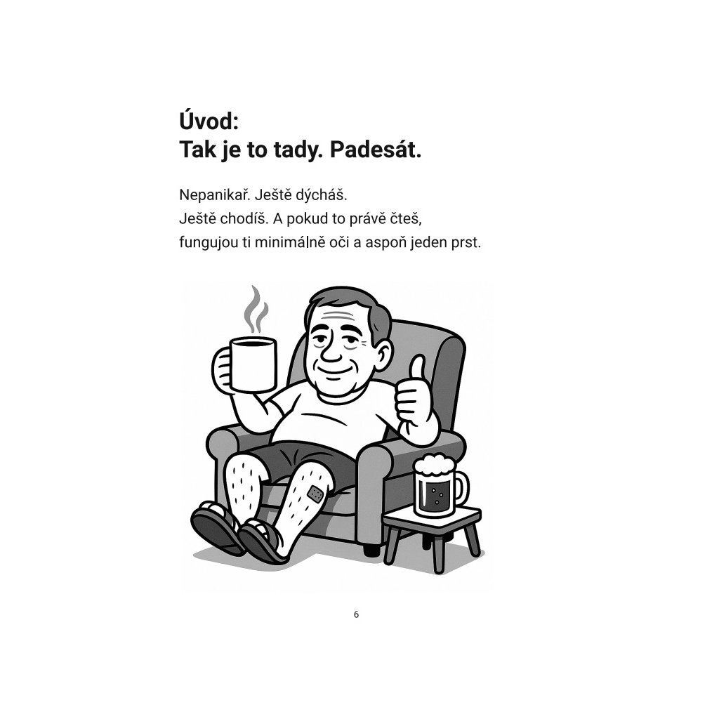 Padesátka na krku? Výborně. Právě jsi upgradoval na verzi 5.0 – stabilní, vyzrálou a s pořádnou dávkou nadhledu. Tahle kniha je přesně pro tebe, nebo pro každého chlapa, který ví, že věk je jen číslo (a občas i počet tablet denně).