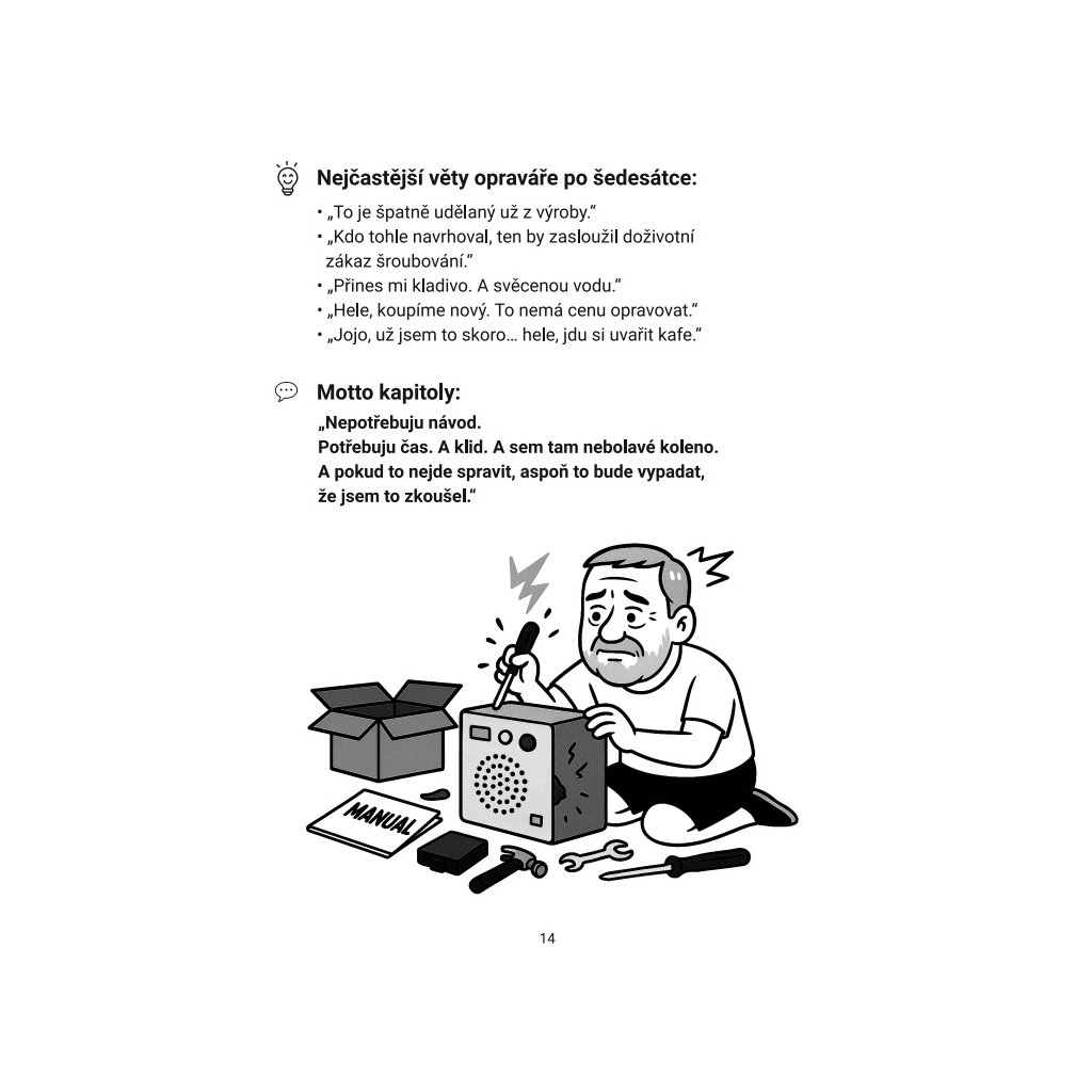 Humorný a pravdivý manuál pro každého muže, který překročil šedesátku – a místo krizí slaví nadhled, pohodlí a teplé ponožky bez díry. Tahle knížka je oslavou mužské pohody, retro vzpomínek a schopnosti smát se sám sobě (nebo aspoň tomu, že zase nevíte, kam jste dali brýle).