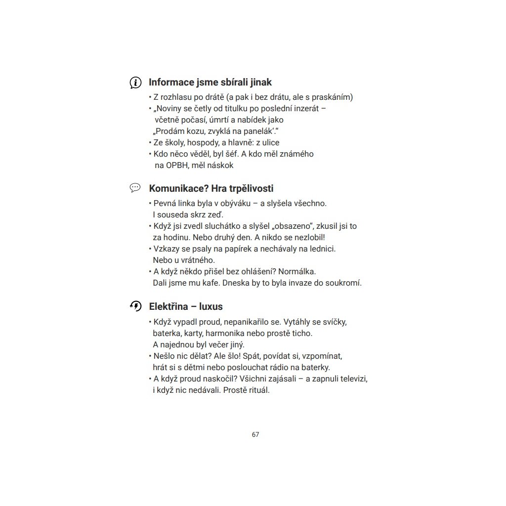 Najdete tu vše od dětství bez helmy, přes první pusy, vojnu, televizní večery, až po sex po sedmdesátce (ano, i ten tu má své místo – decentně!).