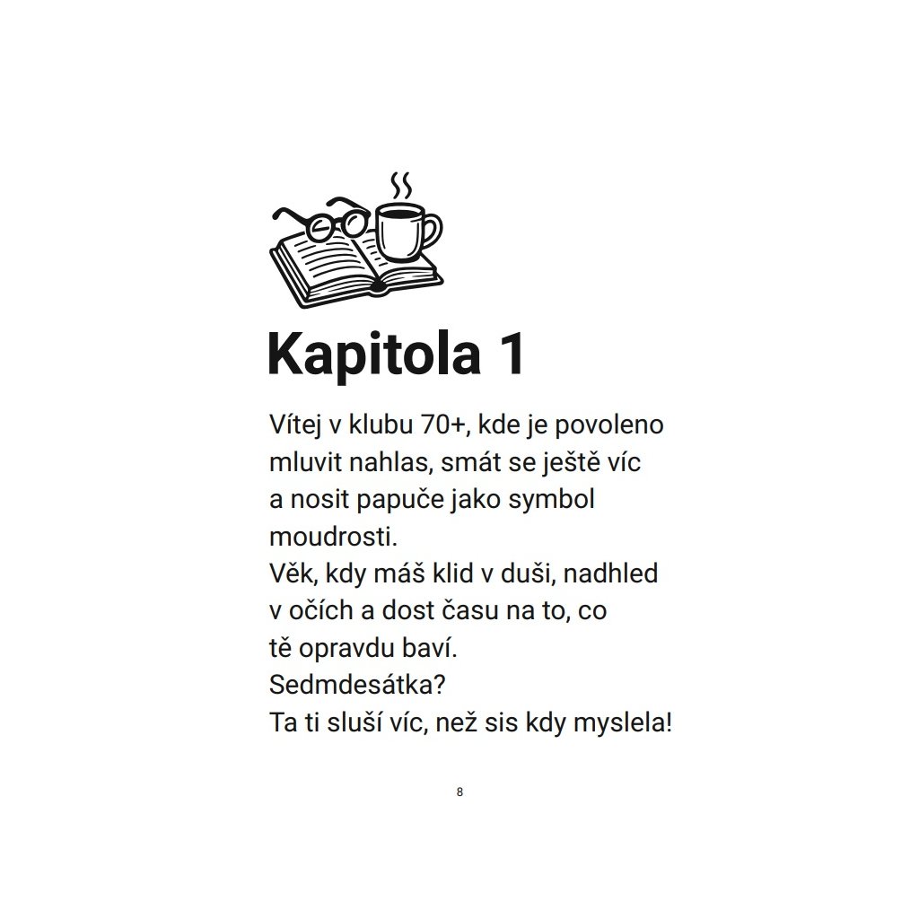 70 a klid v duši – Příručka přežití ženy, která má vše (hlavně nadhled). Hledáte dárek pro úžasnou ženu k jejím 70. narozeninám? Tohle není obyčejná kniha. Je to vtipně psaný, srdcem laděný a láskou nabitý průvodce životem, ve kterém hraje hlavní roli – ona sama.