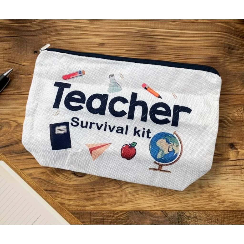 Kosmetická taštička Teacher je ideálním doplňkem nejen pro každodenní používání, ale také jako originální a praktický dárek pro učitele. Design s nápisem „Teacher survival kit“ a barevnými motivy dodává taštičce osobitý styl. Díky kvalitnímu zpracování a odolnému materiálu je vhodná na kosmetiku, drobnosti i školní pomůcky.
