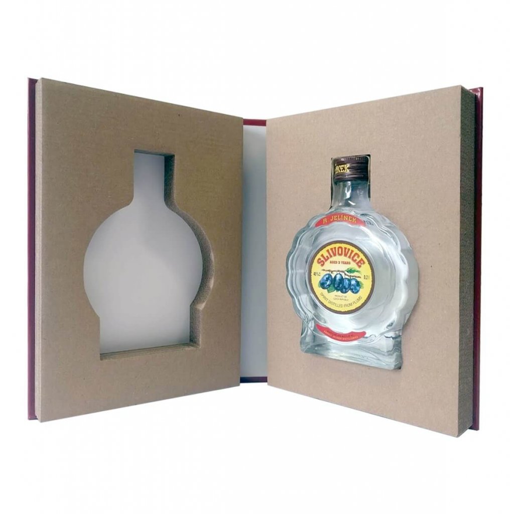 Kniha obsahuje 0,2 l trojročnej, 45 % slivovice.