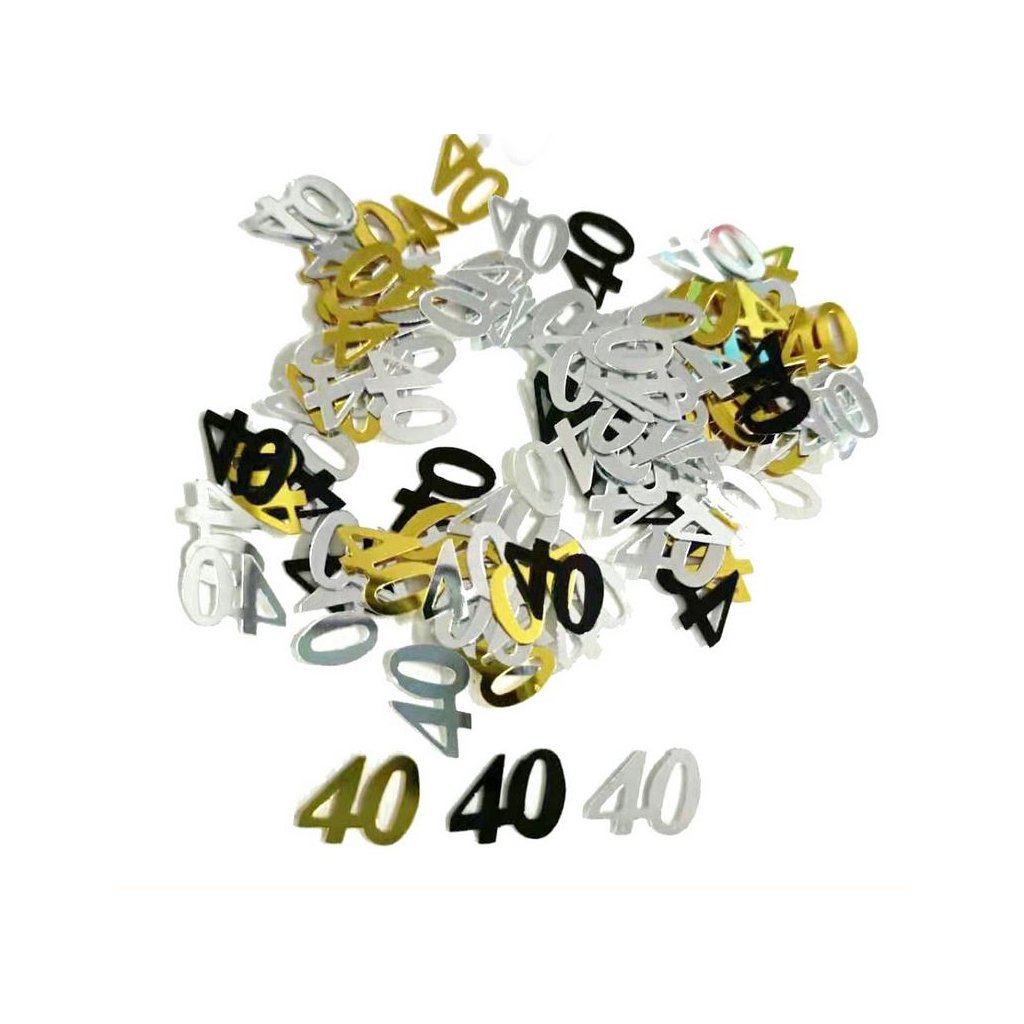 Konfety k 40. narodeninám, vďaka ktorým podčiarknete jedinečnú atmosféru večierku. Konfety poslúžia ako dekorácia na stôl alebo dekorácia izby a bytu.