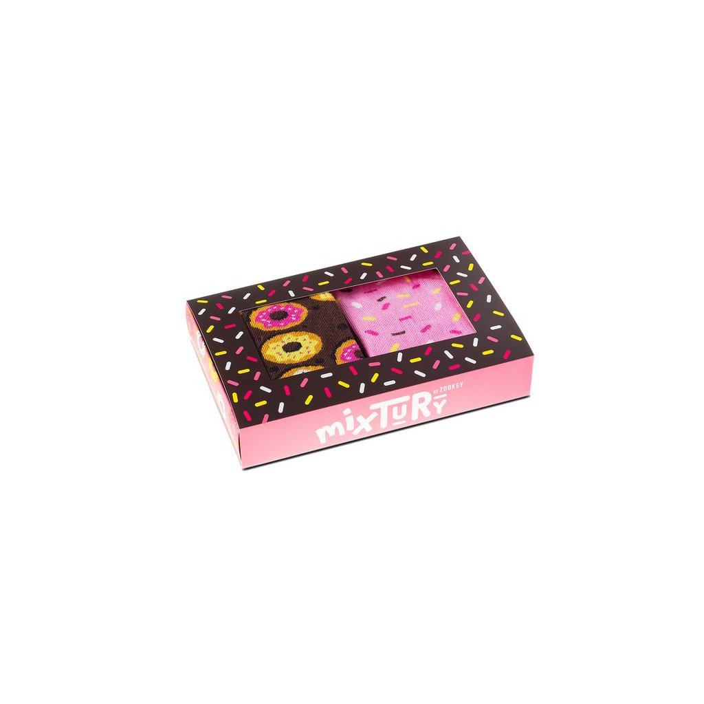 Ponožky Donut - sada 2 párů Vyberte si s jedním vzorem anebo míchejte s druhým. Pokud chcete, můžete si je vybrat klasické nebo neladící! Míchejte ponožky mezi sebou podle nálady. Skvělé jako dárek k narozeninám, svátku, Vánocům a nebo jen jako maličkost pro potěšení! Nechte nohy odpočívat pěkně v teple. Veselé a tématické ponožky, Vám nikdy nedovolí zapadnout do davu. Tyto barevné ponožky podle nás vypadají super chutně a víme, že jsou otevřené všem mixům - nejlépe Koblihy s polevou a posypem. Jak to víme? No, přišli jsme na to sami. Naštěstí se držíme zásady, že nošením se netloustne, a tak vám přejeme lahodné zážitky pokaždé, když si barevné ponožky od Zooksy obléknete! Z čeho jsou vyrobeny Zooxy? Není to žádné tajemství! Vždy používáme nejkvalitnější certifikované příze! Přesvědčte se o tom sami! Balení obsahuje: Dárková krabička - 2 páry ponožek Složení: 80% BAVLNA 18% POLYAMID 2% ELASTAN Velikost: 36-40