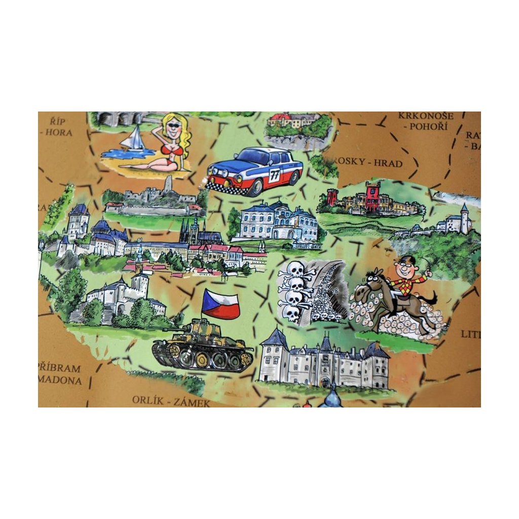 Objevujte místa a krásy Česka s touto originální mapou v provedení od známého kreslíře Ivana Křemečka.