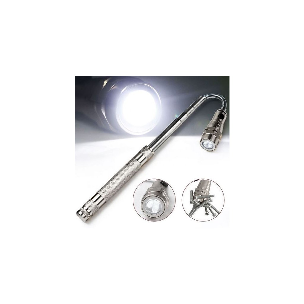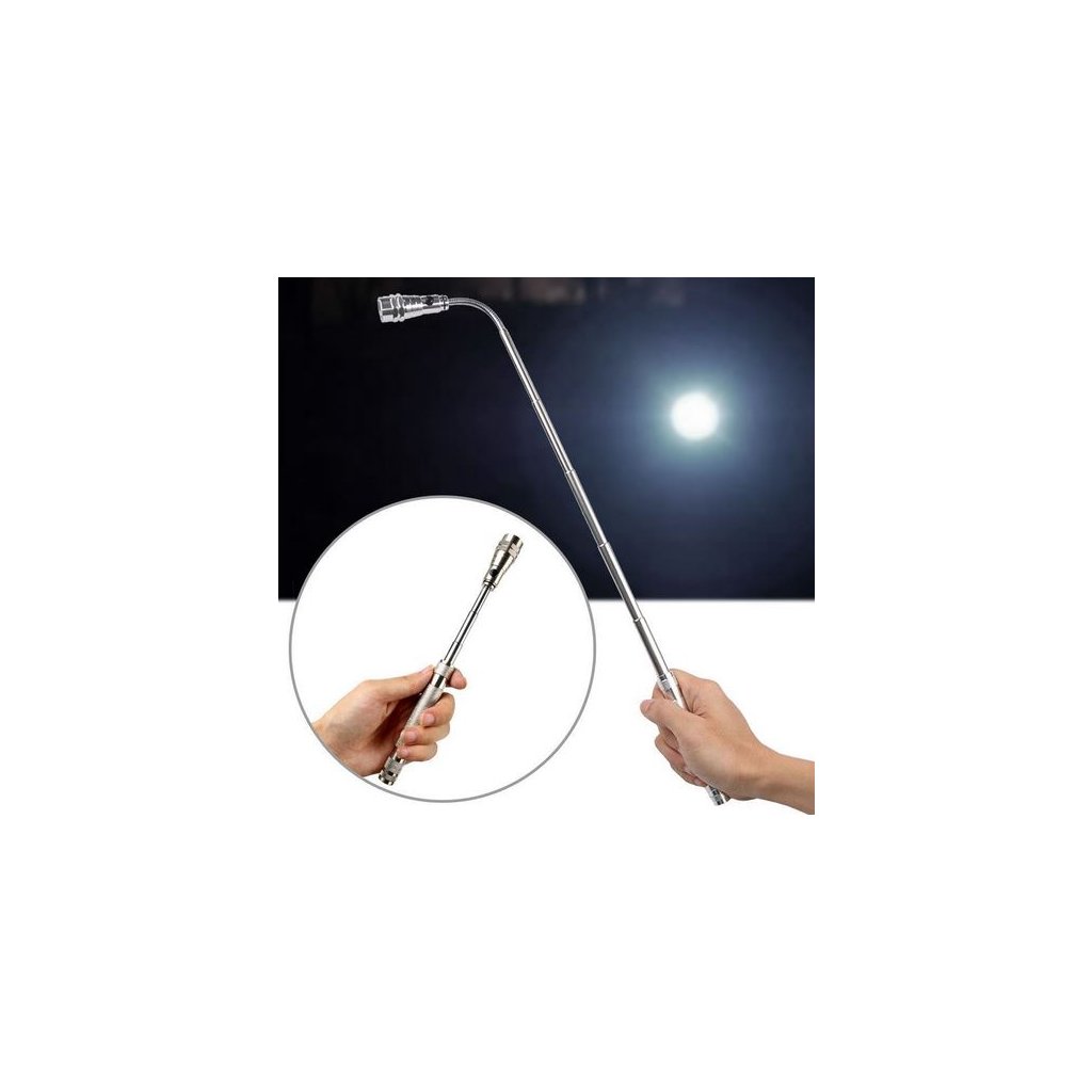 Nielen že si s ňou na dané miesto posvietite, ale navyše si ju môžete povytiahnuť až na dĺžku 57 cm a vec, ktorá vám zapadla tak ju môžete ľahko a rýchlo vytiahnuť. V dielni ju využije perfektne každý mechanik alebo opravár. Svietidlo disponuje celkom 3 LED svetlami. Napájaná je batériami LR, ktoré sú súčasťou balenia. Baterka má z jednej strany kovovú sponu, preto ju môžete zavesiť napríklad na opasok.