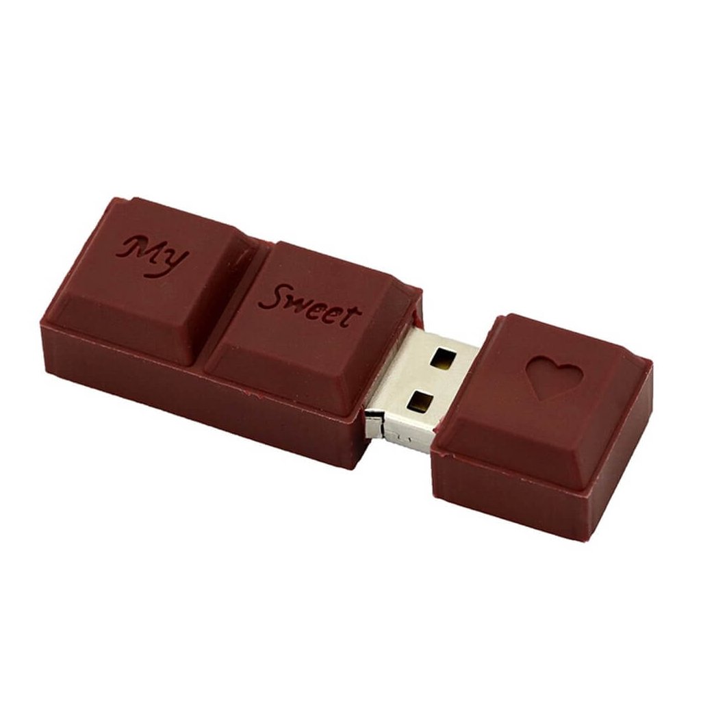 USB flash disk v tvare čokolády. USB kľúč je k zakusnutiu. Rýchlosť čítania až 15 MB / s, rýchlosť zápisu až 5 MB / s. USB kľúč je vyrobený z kvalitného materiálu a neváži viac než 25 gramov.